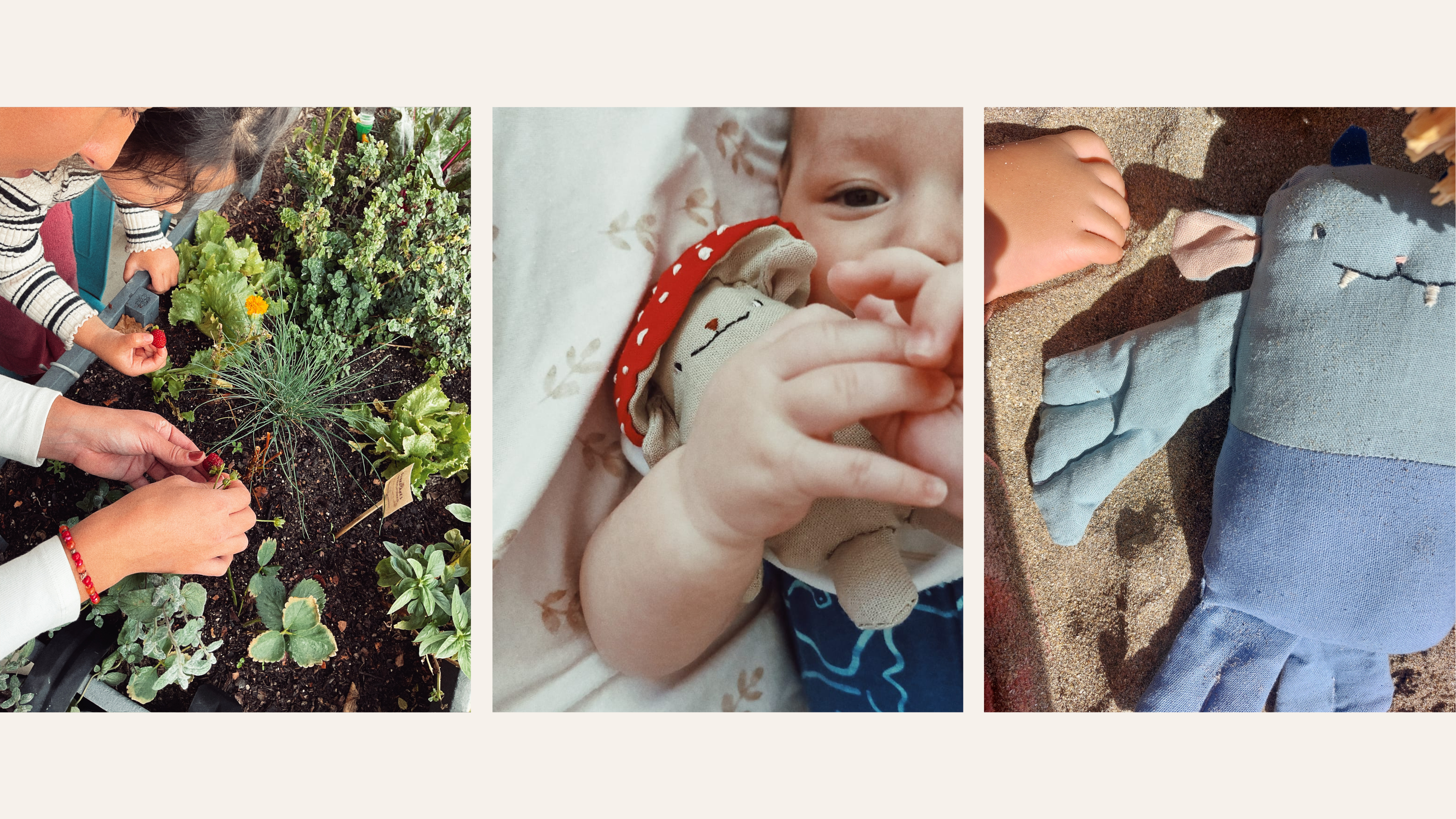 Hechos a mano, con mucho amor, telas de fibras vegetales, relleno de ropa reciclada y materiales conscientes con nuestro planeta.