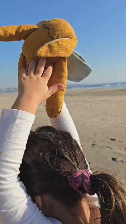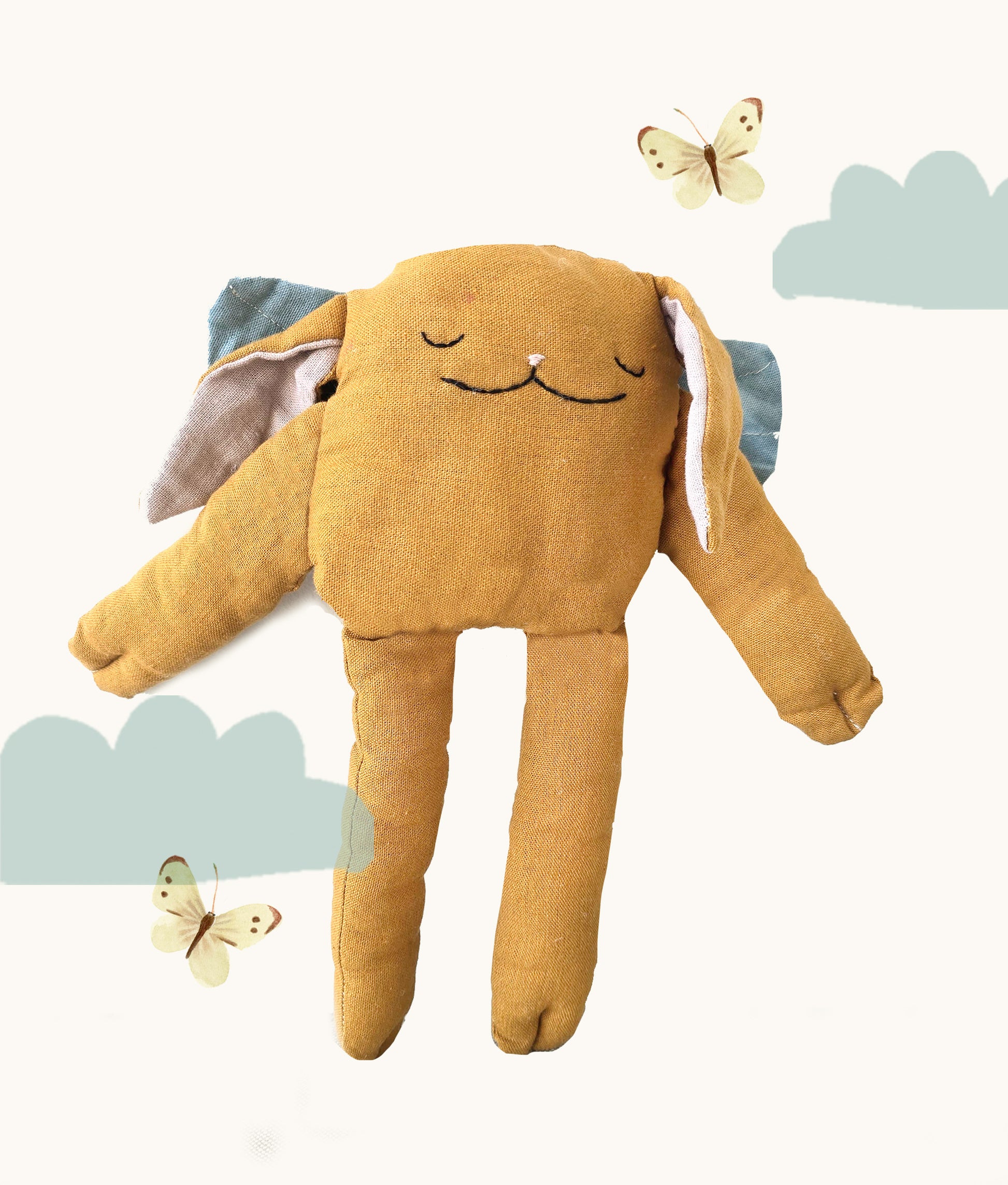 Materiales: Sus alitas son sensoriales, emiten un suave sonido y están rellenas de plástico flexible reciclado, añadiendo un toque único y sostenible a este guardián.